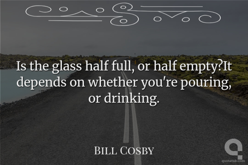 Is the glass half full, or half empty?It depends on whether you're pouring, or drinking. Bill Cosby