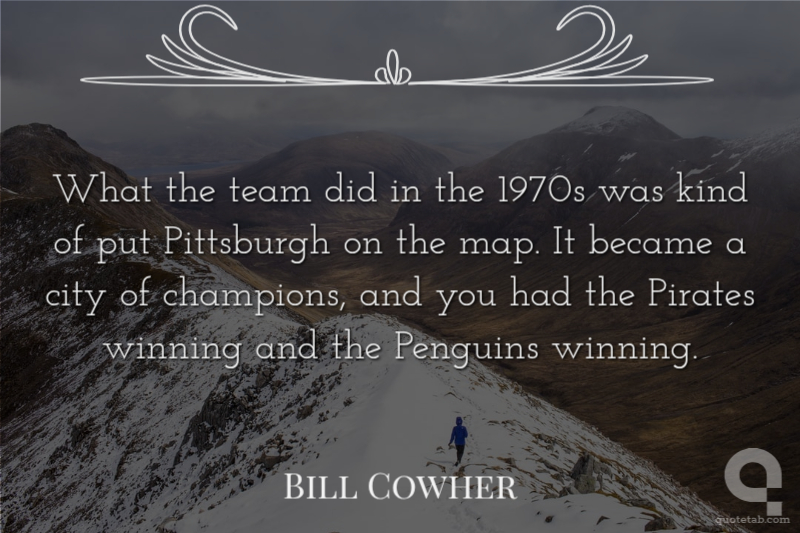 What the team did in the 1970s was kind of put Pittsburgh on the map. It became a city of champions, and you had the Pirates winning and the Penguins winning. Bill Cowher