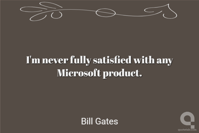I'm never fully satisfied with any Microsoft product. Bill Gates