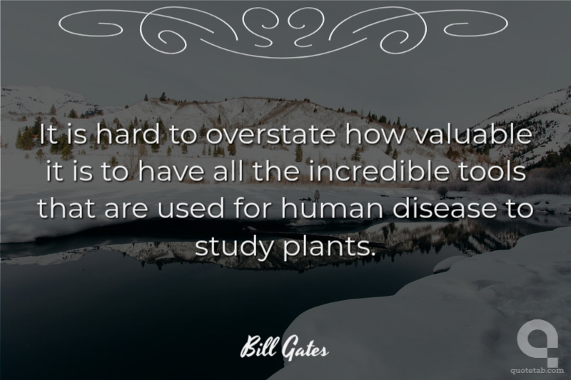 It is hard to overstate how valuable it is to have all the incredible tools that are used for human disease to study plants. Bill Gates
