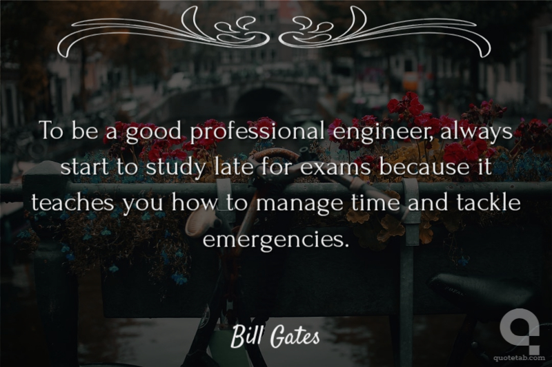 To be a good professional engineer, always start to study late for exams because it teaches you how to manage time and tackle emergencies. Bill Gates
