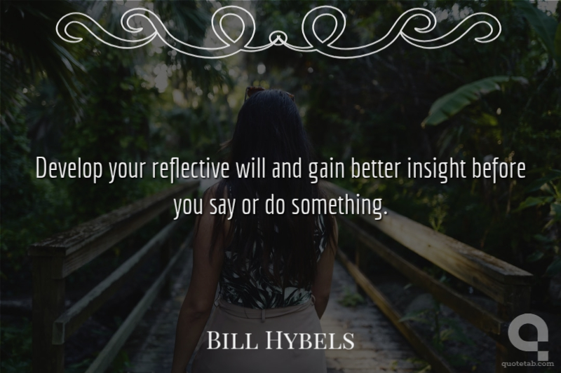 Develop your reflective will and gain better insight before you say or do something. Bill Hybels