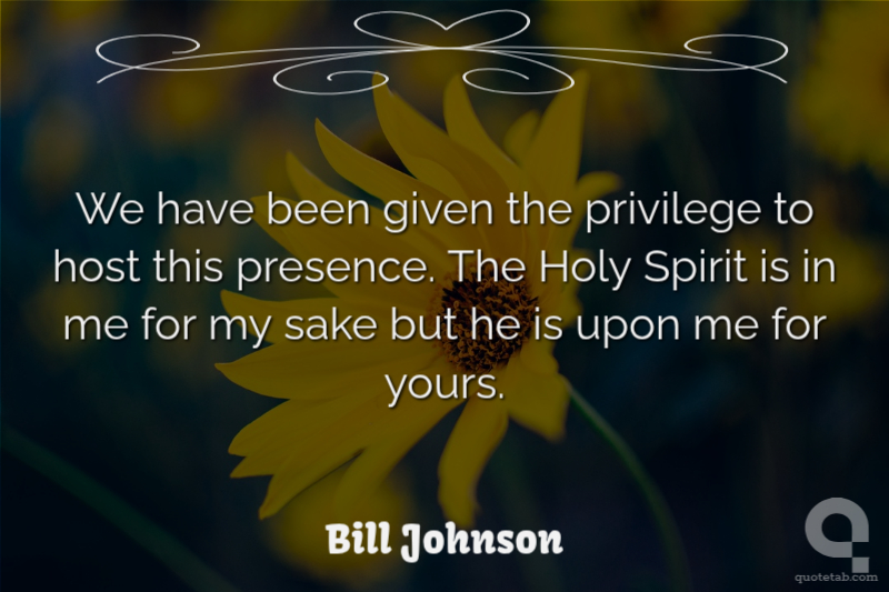 We have been given the privilege to host this presence. The Holy Spirit is in me for my sake but he is upon me for yours. Bill Johnson