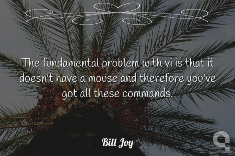 The fundamental problem with vi is that it doesn't have a mouse and therefore you've got all these commands. Bill Joy