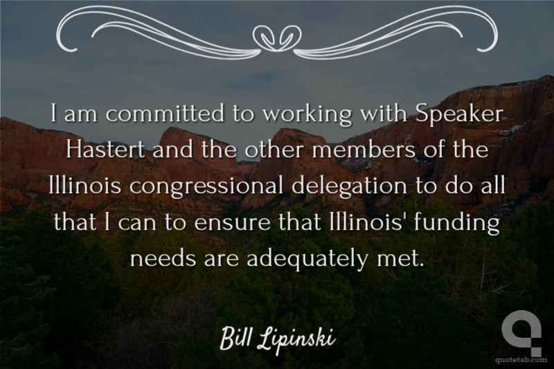 I am committed to working with Speaker Hastert and the other members of the Illinois congressional delegation to do all that I can to ensure that Illinois' funding needs are adequately met. Bill Lipinski