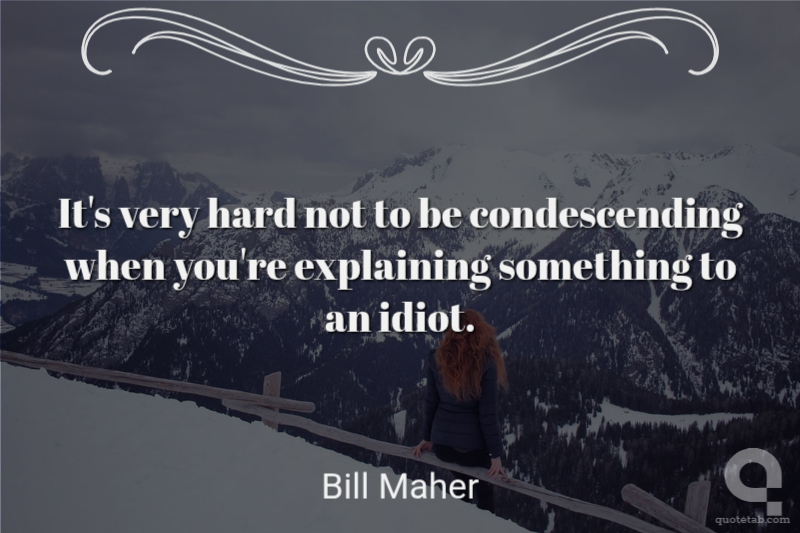 It's very hard not to be condescending when you're explaining something to an idiot. Bill Maher