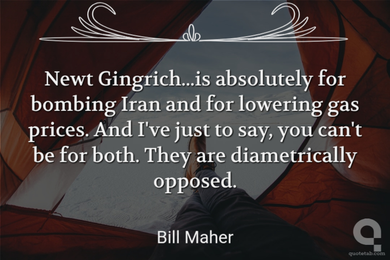 Newt Gingrich...is absolutely for bombing Iran and for lowering gas prices. And I've just to say, you can't be for both. They are diametrically opposed. Bill Maher
