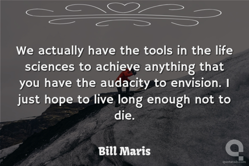 We actually have the tools in the life sciences to achieve anything that you have the audacity to envision. I just hope to live long enough not to die. Bill Maris