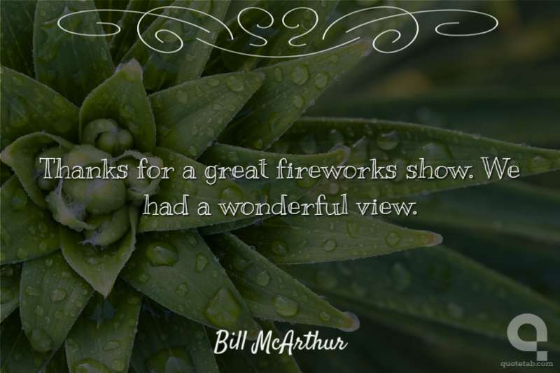 Thanks for a great fireworks show. We had a wonderful view. Bill McArthur