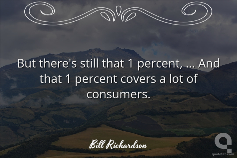 But there's still that 1 percent, ... And that 1 percent covers a lot of consumers. Bill Richardson
