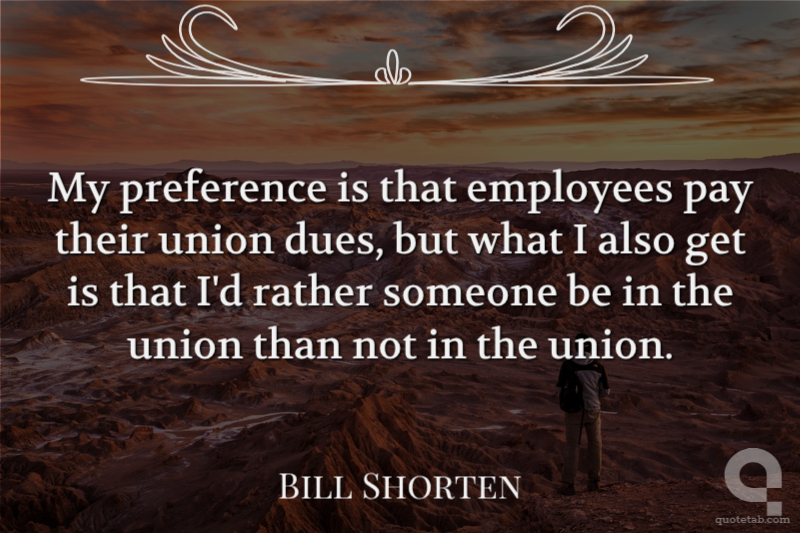 My preference is that employees pay their union dues, but what I also get is that I'd rather someone be in the union than not in the union. Bill Shorten