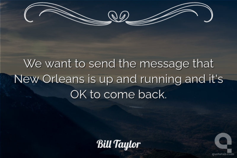 We want to send the message that New Orleans is up and running and it's OK to come back. Bill Taylor
