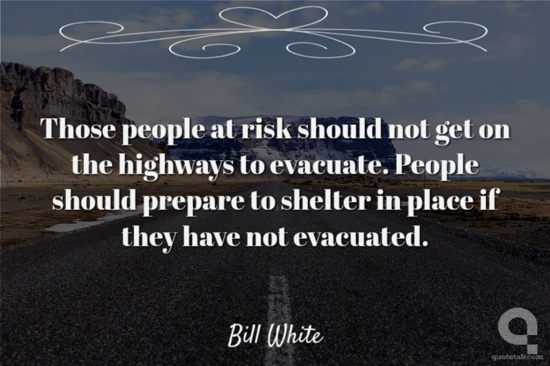 Those people at risk should not get on the highways to evacuate. People should prepare to shelter in place if they have not evacuated. Bill White