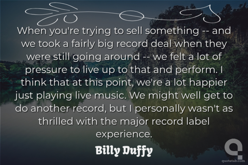 When you're trying to sell something -- and we took a fairly big record deal when they were still going around -- we felt a lot of pressure to live up to that and perform. I think that at this point, we're a lot happier just playing live music. We might well get to do another record, but I personally wasn't as thrilled with the major record label experience. Billy Duffy