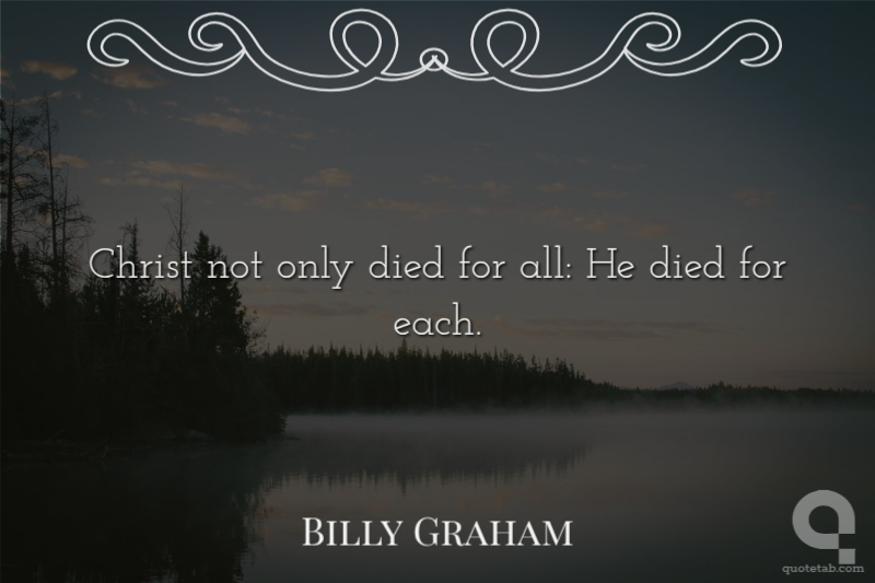 Christ not only died for all: He died for each. Billy Graham