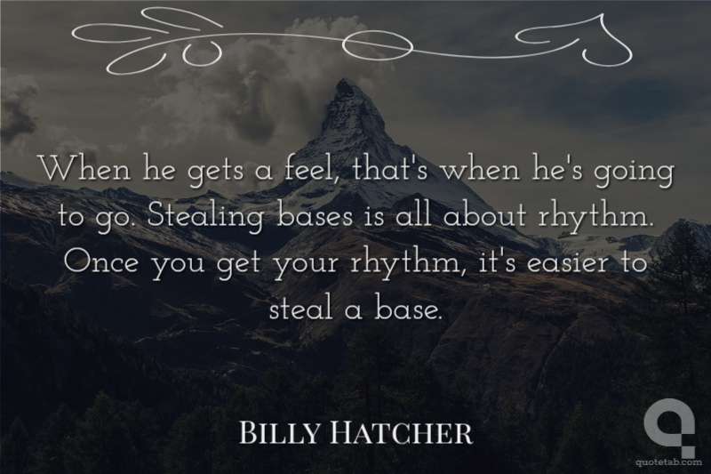 When he gets a feel, that's when he's going to go. Stealing bases is all about rhythm. Once you get your rhythm, it's easier to steal a base. Billy Hatcher