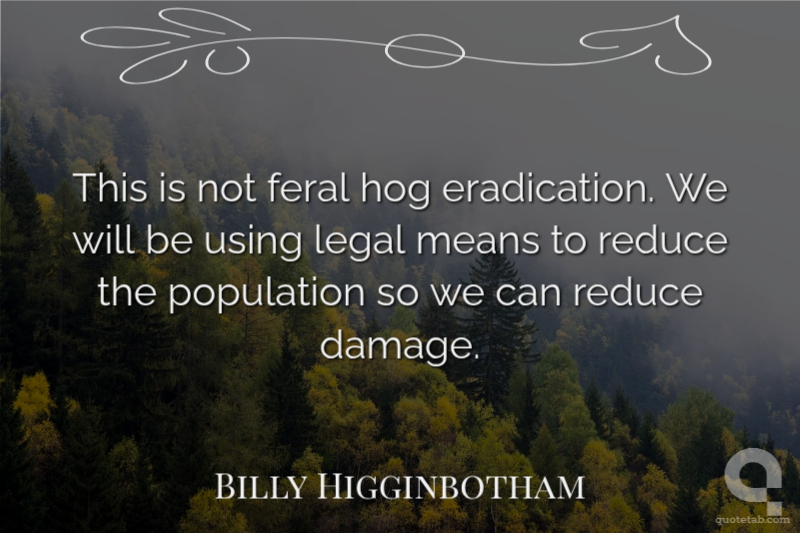 This is not feral hog eradication. We will be using legal means to reduce the population so we can reduce damage. Billy Higginbotham