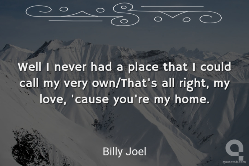 Well I never had a place that I could call my very own/That's all right, my love, 'cause you're my home. Billy Joel