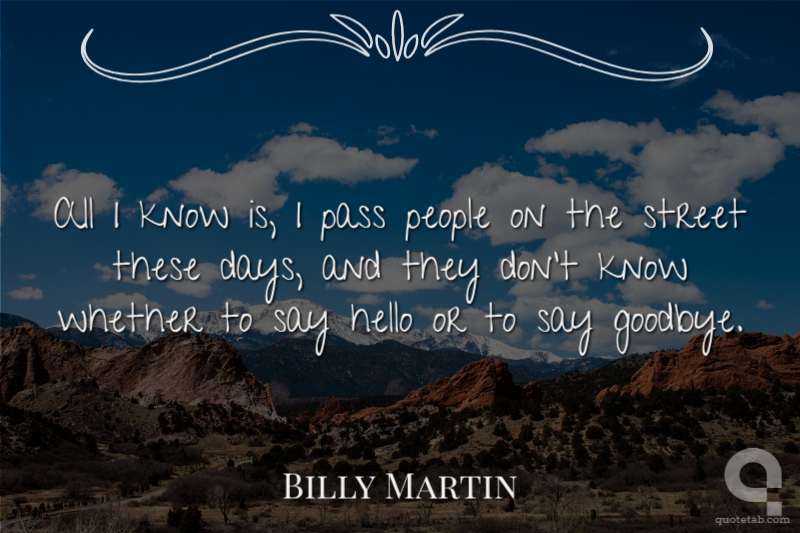All I know is, I pass people on the street these days, and they don't know whether to say hello or to say goodbye. Billy Martin