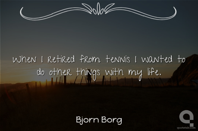 When I retired from tennis I wanted to do other things with my life. Bjorn Borg