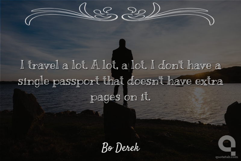 I travel a lot. A lot, a lot. I don't have a single passport that doesn't have extra pages on it. Bo Derek