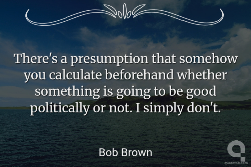 There's a presumption that somehow you calculate beforehand whether something is going to be good politically or not. I simply don't. Bob Brown