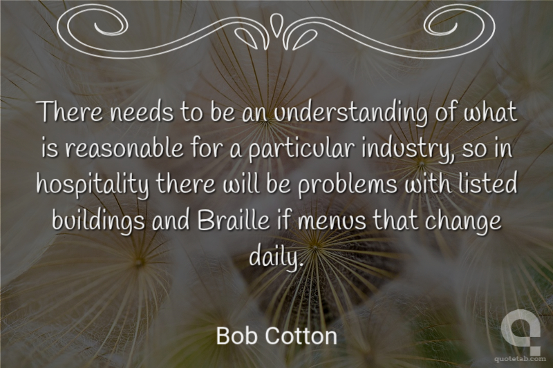 There needs to be an understanding of what is reasonable for a particular industry, so in hospitality there will be problems with listed buildings and Braille if menus that change daily. Bob Cotton