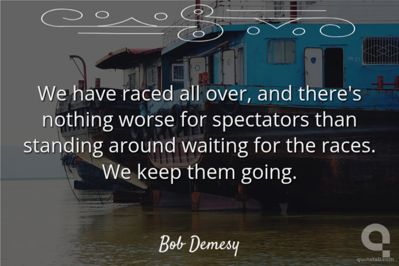We have raced all over, and there's nothing worse for spectators than standing around waiting for the races. We keep them going. Bob Demesy
