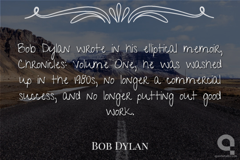 Bob Dylan wrote in his elliptical memoir, Chronicles: Volume One, he was washed up in the 1980s, no longer a commercial success, and no longer putting out good work. Bob Dylan