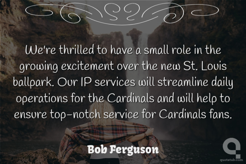 We're thrilled to have a small role in the growing excitement over the new St. Louis ballpark. Our IP services will streamline daily operations for the Cardinals and will help to ensure top-notch service for Cardinals fans. Bob Ferguson
