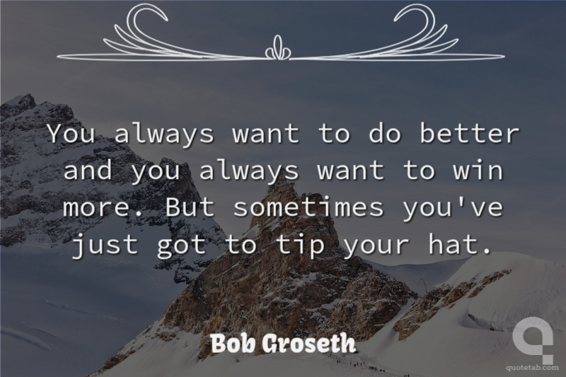You always want to do better and you always want to win more. But sometimes you've just got to tip your hat. Bob Groseth