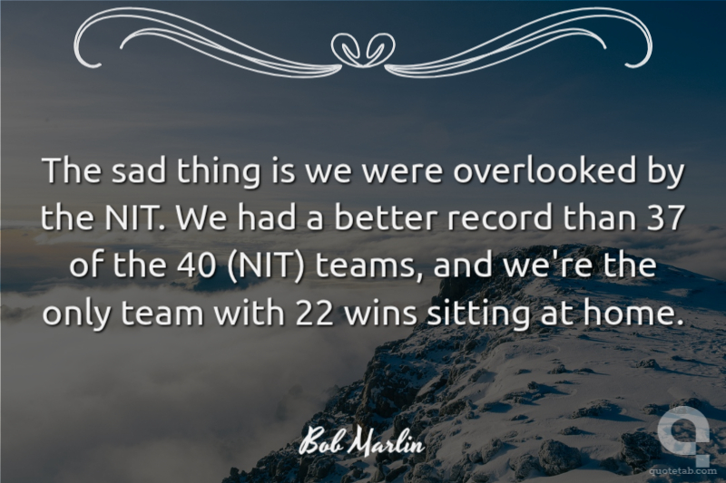The sad thing is we were overlooked by the NIT. We had a better record than 37 of the 40 (NIT) teams, and we're the only team with 22 wins sitting at home. Bob Marlin