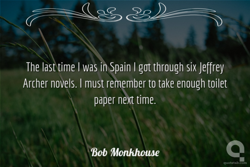 The last time I was in Spain I got through six Jeffrey Archer novels. I must remember to take enough toilet paper next time. Bob Monkhouse