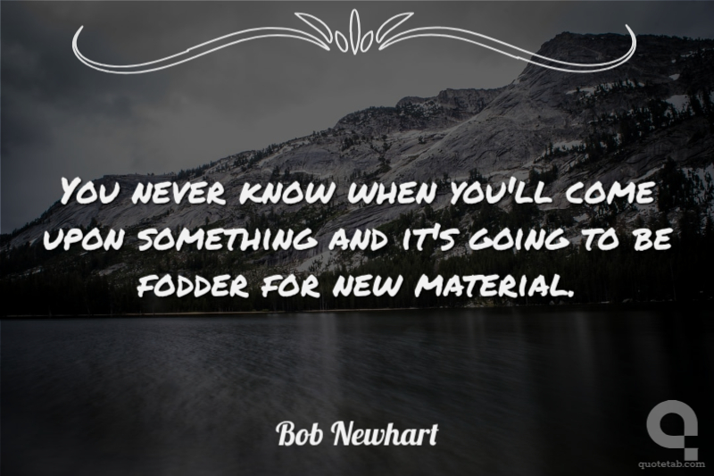 You never know when you'll come upon something and it's going to be fodder for new material. Bob Newhart