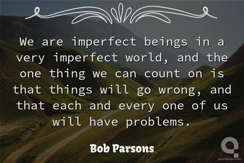 We are imperfect beings in a very imperfect world, and the one thing we can count on is that things will go wrong, and that each and every one of us will have problems. Bob Parsons