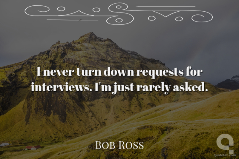I never turn down requests for interviews. I'm just rarely asked. Bob Ross