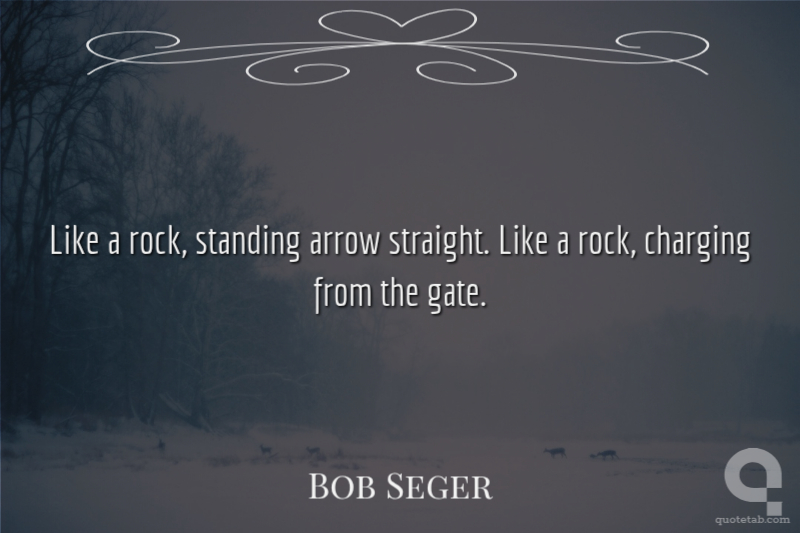 Like a rock, standing arrow straight. Like a rock, charging from the gate. Bob Seger