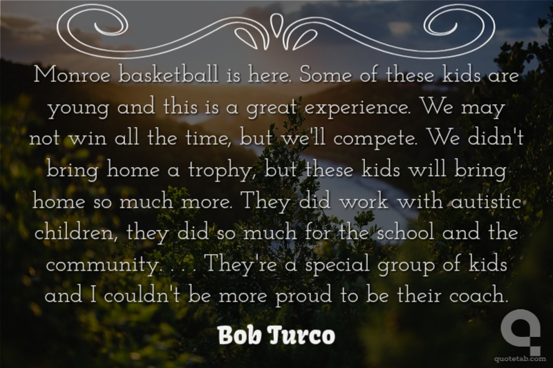 Monroe basketball is here. Some of these kids are young and this is a great experience. We may not win all the time, but we'll compete. We didn't bring home a trophy, but these kids will bring home so much more. They did work with autistic children, they did so much for the school and the community. . . . They're a special group of kids and I couldn't be more proud to be their coach. Bob Turco