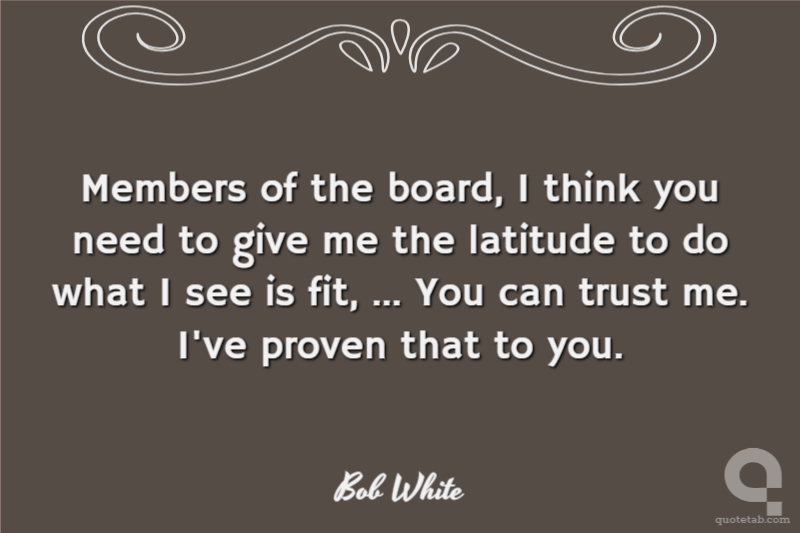 Members of the board, I think you need to give me the latitude to do what I see is fit, ... You can trust me. I've proven that to you. Bob White