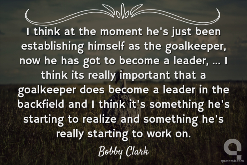 I think at the moment he's just been establishing himself as the goalkeeper, now he has got to become a leader, ... I think its really important that a goalkeeper does become a leader in the backfield and I think it's something he's starting to realize and something he's really starting to work on. Bobby Clark