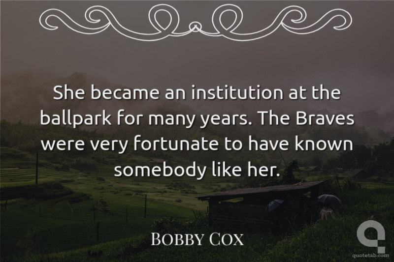 She became an institution at the ballpark for many years. The Braves were very fortunate to have known somebody like her. Bobby Cox