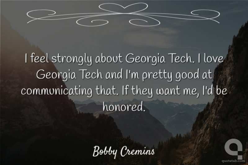 I feel strongly about Georgia Tech. I love Georgia Tech and I'm pretty good at communicating that. If they want me, I'd be honored. Bobby Cremins