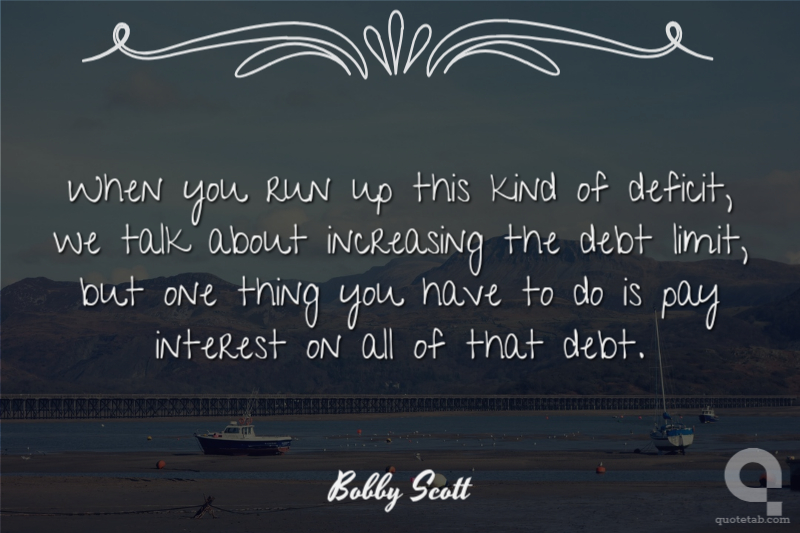 When you run up this kind of deficit, we talk about increasing the debt limit, but one thing you have to do is pay interest on all of that debt. Bobby Scott