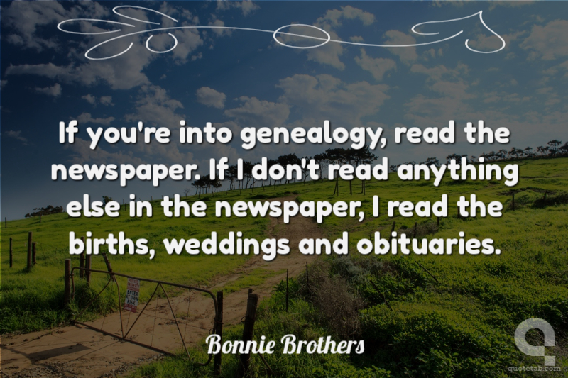Bonnie Brothers If you're into genealogy, read the newspaper. If I don't read anything else in the newspaper, I read the births, weddings and obituaries.