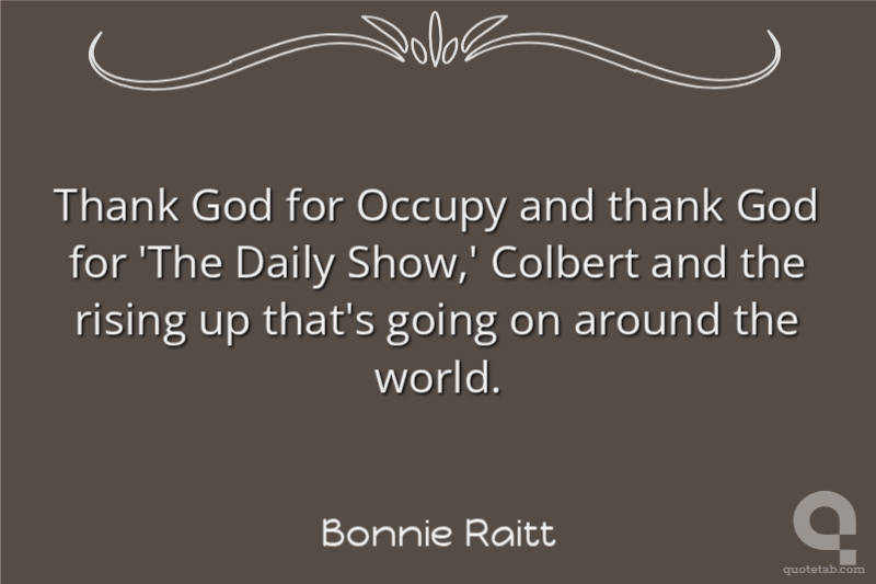 Thank God for Occupy and thank God for 'The Daily Show,' Colbert and the rising up that's going on around the world. Bonnie Raitt