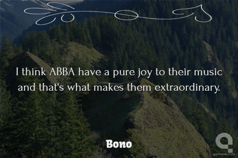 I think ABBA have a pure joy to their music and that's what makes them extraordinary. Bono