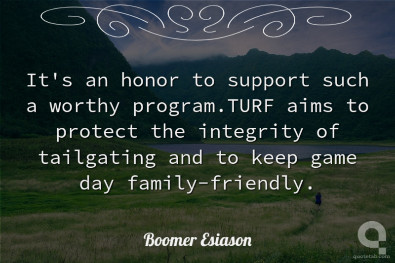 It's an honor to support such a worthy program.TURF aims to protect the integrity of tailgating and to keep game day family-friendly. Boomer Esiason