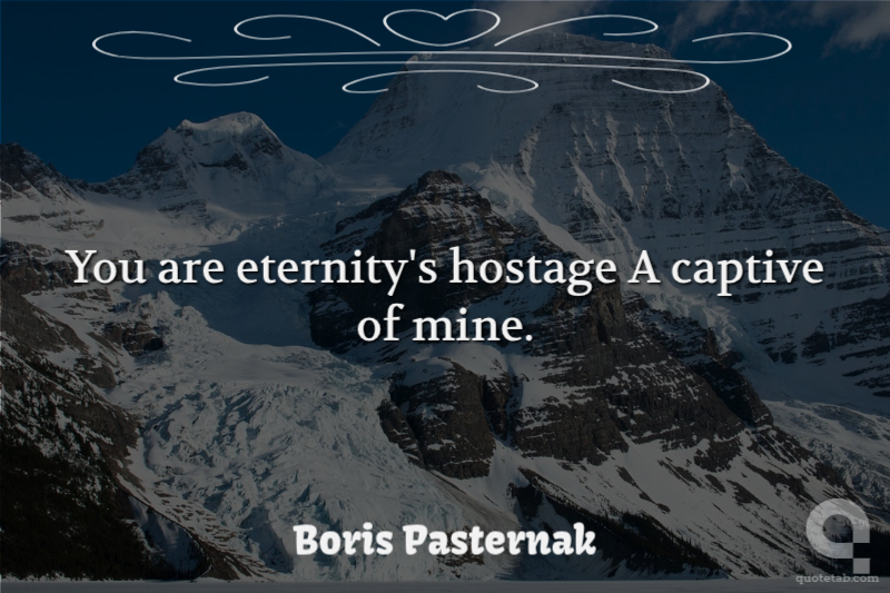 You are eternity's hostage A captive of mine. Boris Pasternak