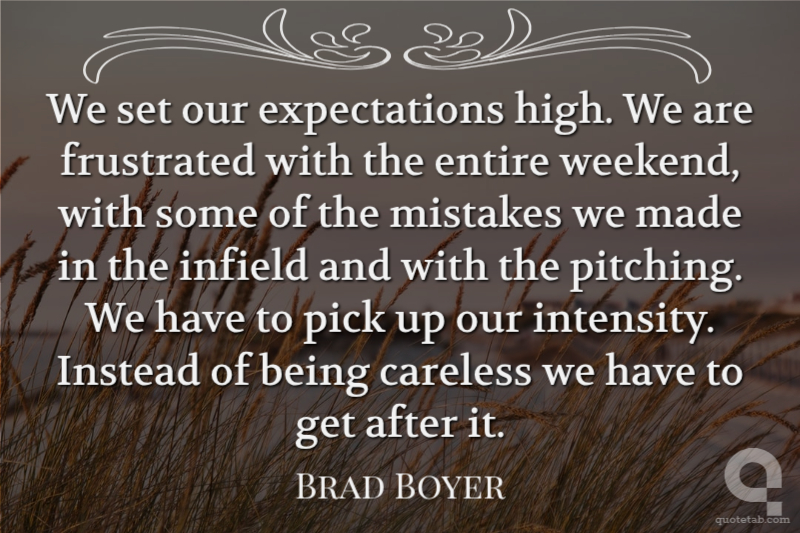 We set our expectations high. We are frustrated with the entire weekend, with some of the mistakes we made in the infield and with the pitching. We have to pick up our intensity. Instead of being careless we have to get after it. Brad Boyer