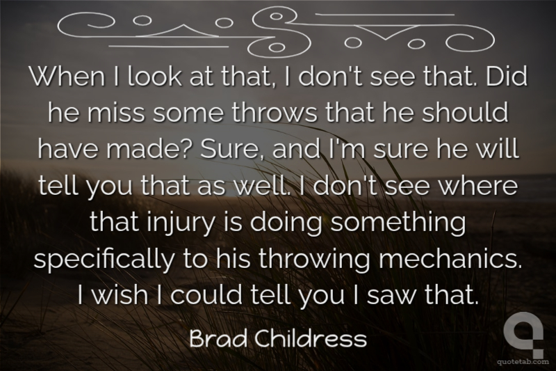 When I look at that, I don't see that. Did he miss some throws that he should have made? Sure, and I'm sure he will tell you that as well. I don't see where that injury is doing something specifically to his throwing mechanics. I wish I could tell you I saw that. Brad Childress